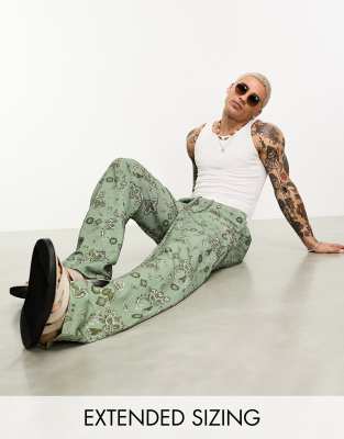 Pantalones holgados con estampado de cachemir de lino de ASOS DESIGN