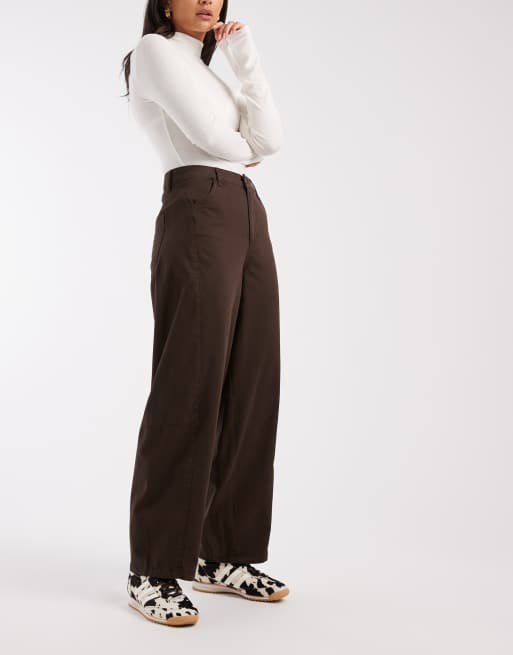 Pantalones marrón chocolate de pernera barrel de tejido efecto papel de ASOS DESIGN