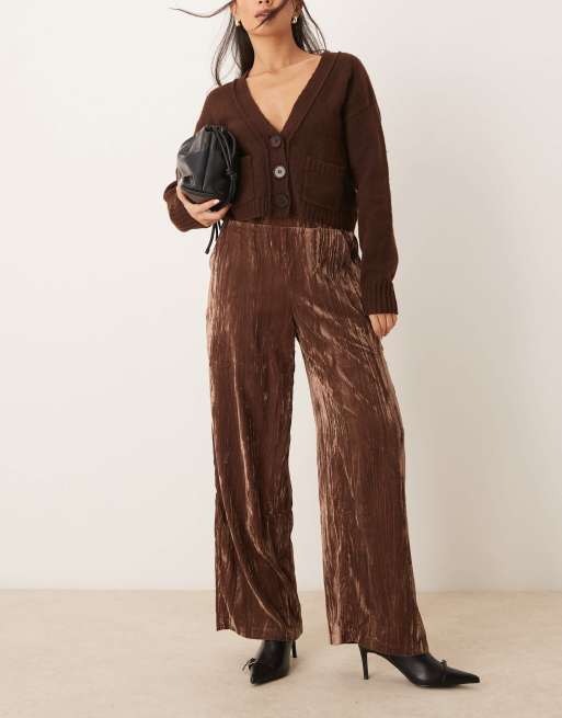 Pantalones marrón chocolate sin cierres de terciopelo rugoso de ASOS DESIGN