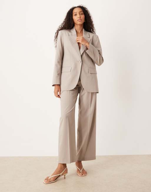 Pantalones marrón topo a rayas de pernera ancha con pinzas de ASOS DESIGN (parte de un conjunto)