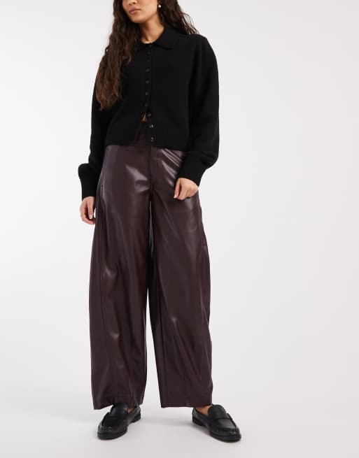 Pantalones morado ciruela de pernera barrel con detalle de costura de cuero sintético de ASOS DESIGN