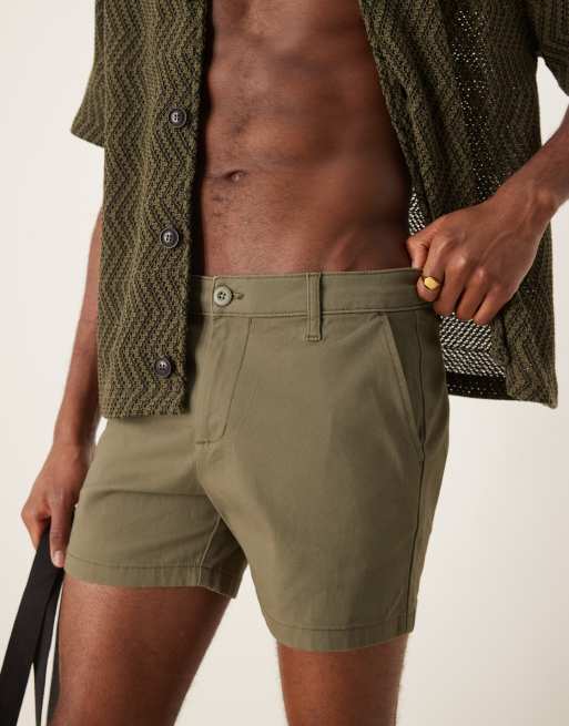 Pantalones muy cortos chinos caquis de corte pitillo de ASOS DESIGN