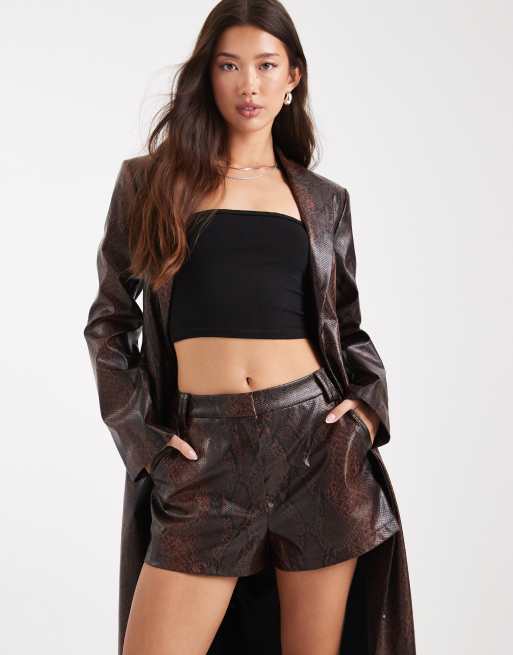Pantalones muy cortos de sastre marrón efecto piel de serpiente de cuero sintético de ASOS DESIGN (parte de un conjunto)