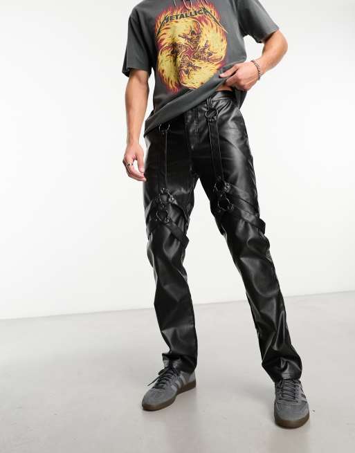 Pantalones negros de corte recto con detalle de arnés de tejido efecto cuero de ASOS DESIGN