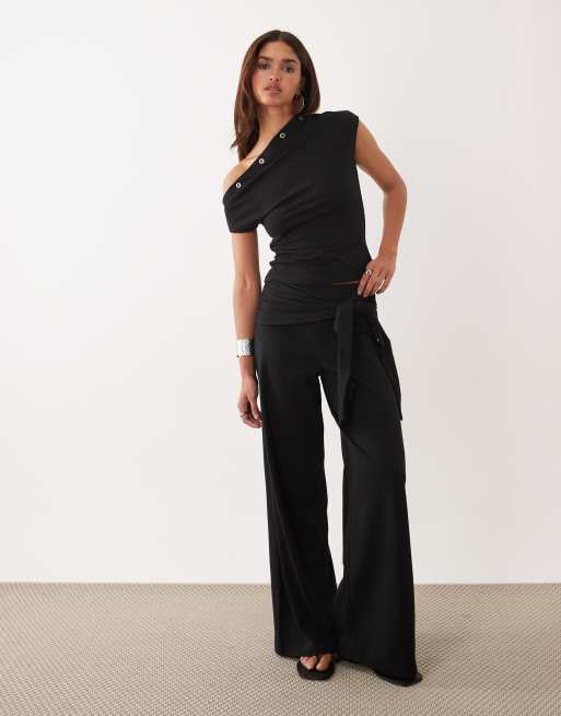 Pantalones negros de pernera ancha con detalle de lazada en la cintura de ASOS DESIGN (parte de un conjunto)