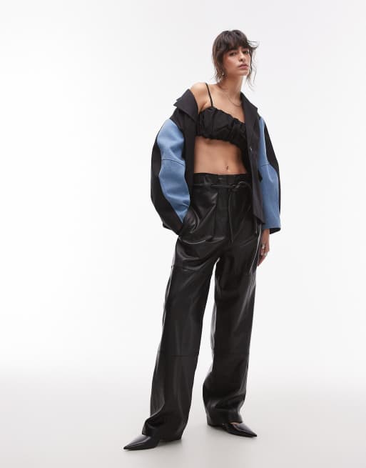 Pantalones negros desestructurados con cinturón de cuero de ASOS DESIGN