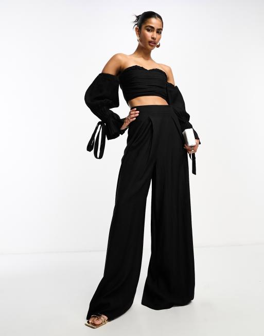 Pantalones negros plisados de pernera ancha de ASOS DESIGN (parte de un conjunto)