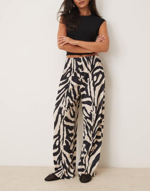 Pantalones plisados de pernera ancha con estampado de cebra de ASOS DESIGN