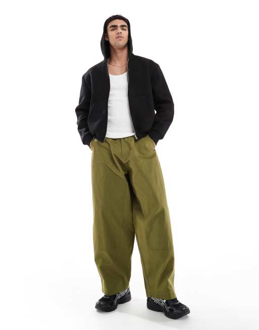 Pantalones verdes de corte holgado extragrande con paneles en las rodillas de ASOS DESIGN