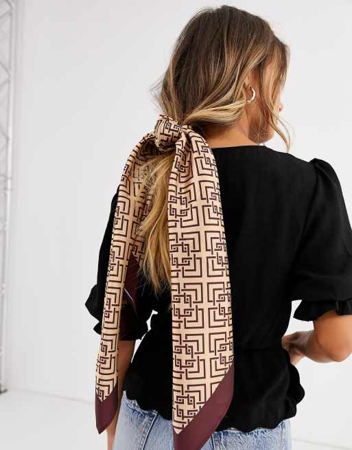 Pañuelo marrón de poliéster y satén con diseño cuadrado grande con monograma de ASOS DESIGN