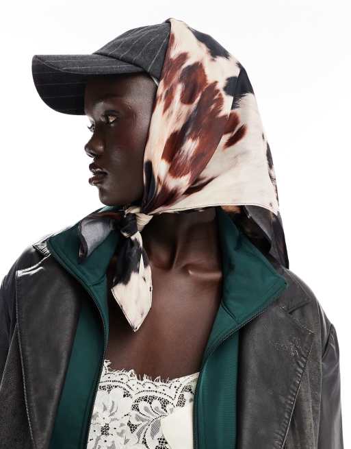 Pañuelo para la cabeza con estampado de vaca de satén de ASOS DESIGN
