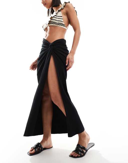 Pareo midi negro con cintura retorcida y acabado texturizado de ASOS DESIGN