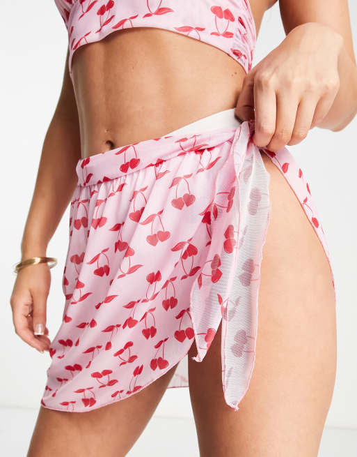 Pareo playero con estampado de cerezas de malla de ASOS DESIGN