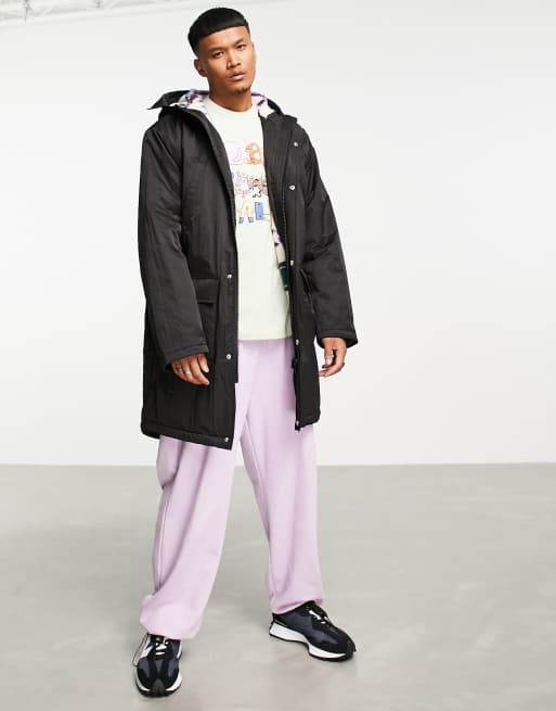 Parka negra con forro de inspiración azteca de borreguito de ASOS DESIGN