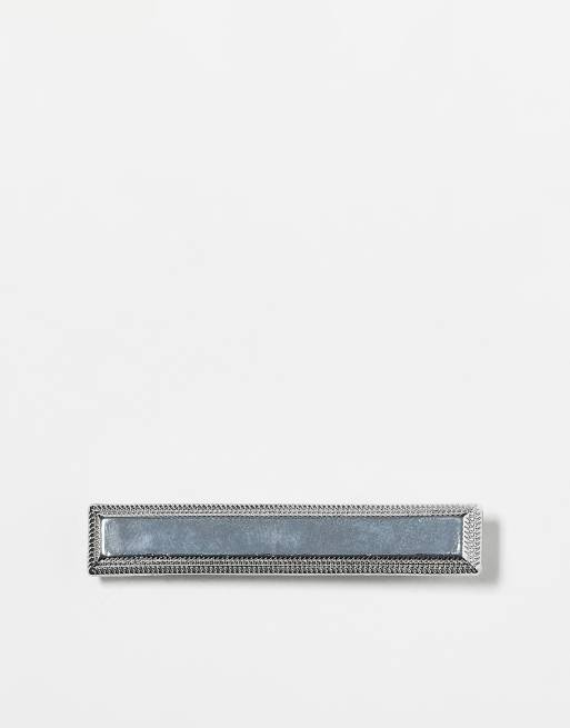 Pasador de corbata plateado con detalle en los bordes de ASOS DESIGN