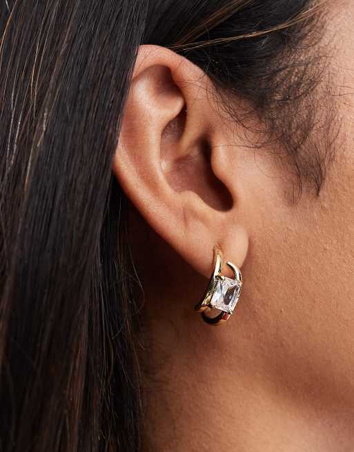 Pendientes de aro chapados en oro de 14 quilates con detalle de circonita de ASOS DESIGN