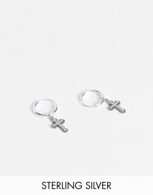 Pendientes de aro con cruces góticas de plata de ley de ASOS DESIGN