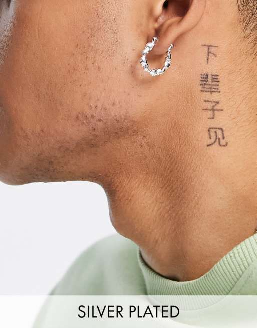 Pendientes de aro con llamas fundidas chapados en plata auténtica de ASOS DESIGN