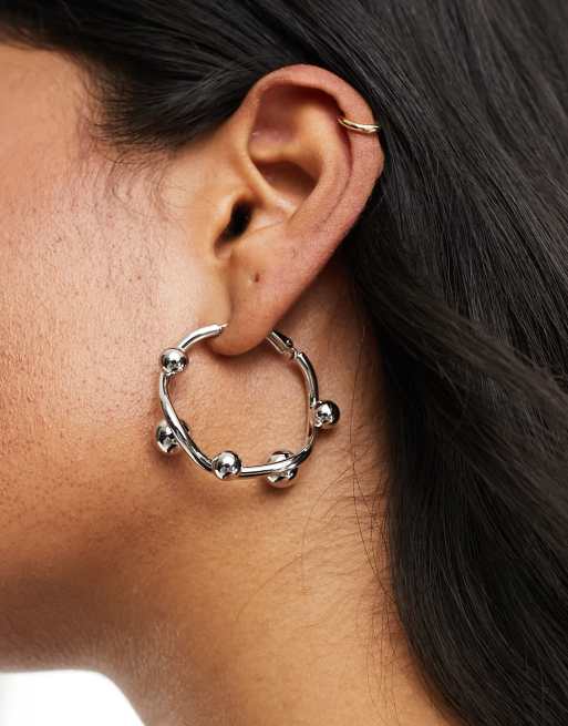 Pendientes de aro de 36 mm plateados con diseño ondulado con esferas de ASOS DESIGN