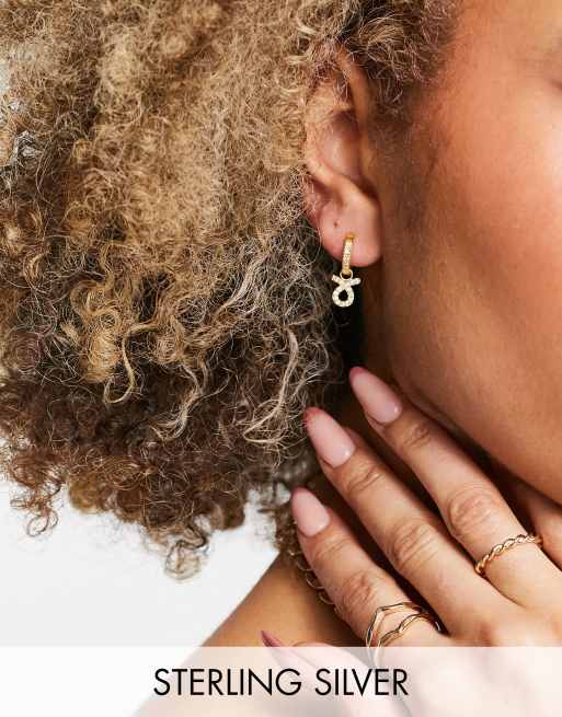 Pendientes de aro de plata de ley chapada en oro con charm de cristal del signo Tauro de ASOS DESIGN