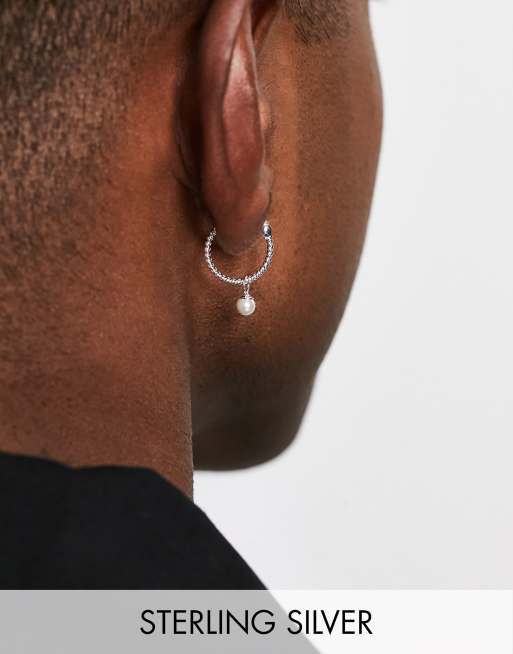 Pendientes de aro de plata de ley con perlas sintéticas de ASOS DESIGN