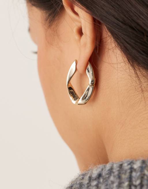 Pendientes de aro dorados con diseño angular retorcido y cierre de bisagra de ASOS DESIGN