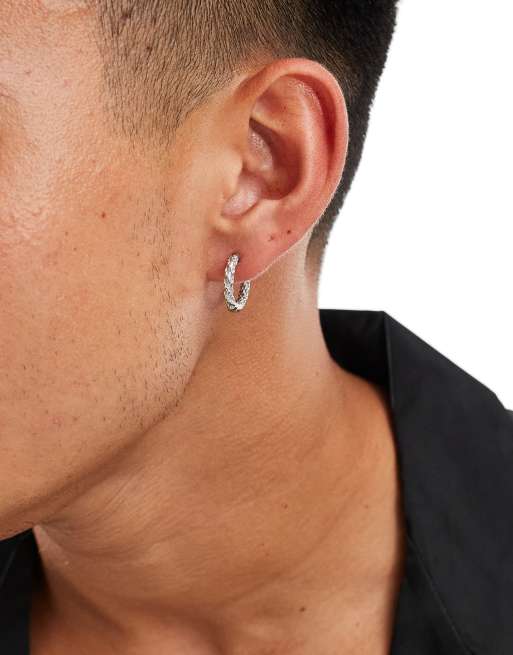 Pendientes de aro plateados texturizados de acero inoxidable resistente al agua de ASOS DESIGN