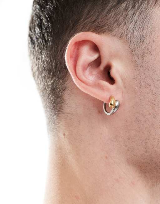 Pendientes de aro plateados y dorados con diseño envolvente abombado de acero inoxidable resistente al agua de ASOS DESIGN
