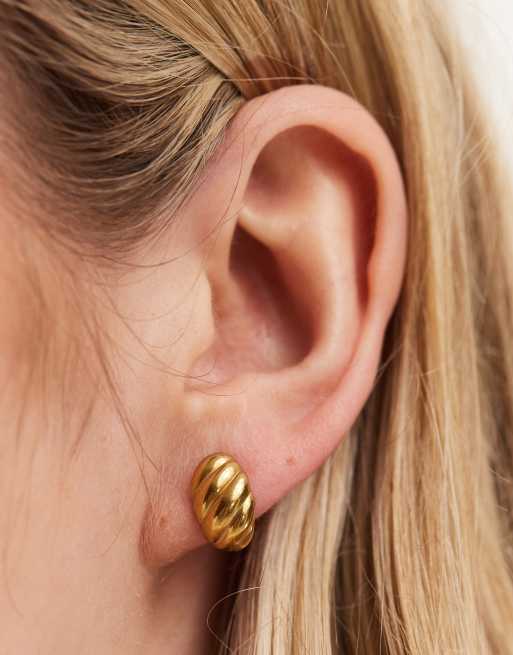 Pendientes de botón dorados con diseño curvado y acanalado de acero inoxidable resistente al agua de ASOS DESIGN