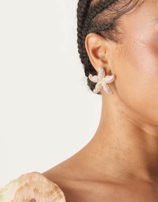 Pendientes de botón dorados con diseño de estrella de mar con abalorios de ASOS DESIGN