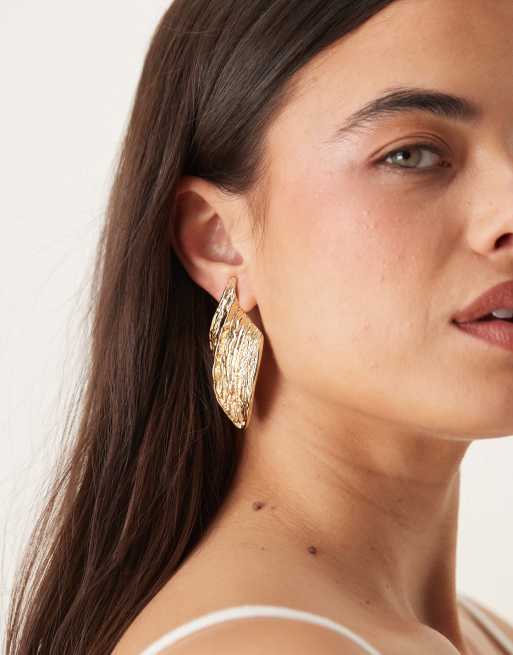 Pendientes de botón dorados con diseño de hojas texturizadas de ASOS DESIGN
