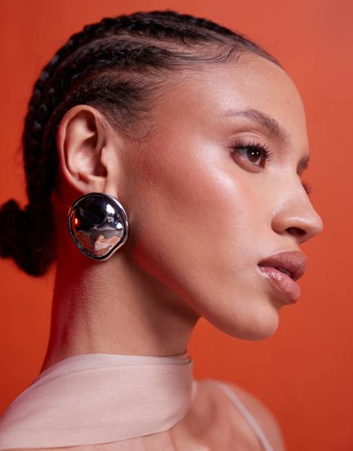 Pendientes de botón plateados con detalle circular extragrande efecto fundido de ASOS DESIGN