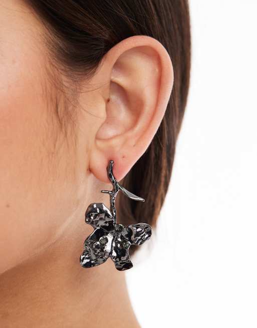 Pendientes de botón plateados con diseño floral abstracto de ASOS DESIGN