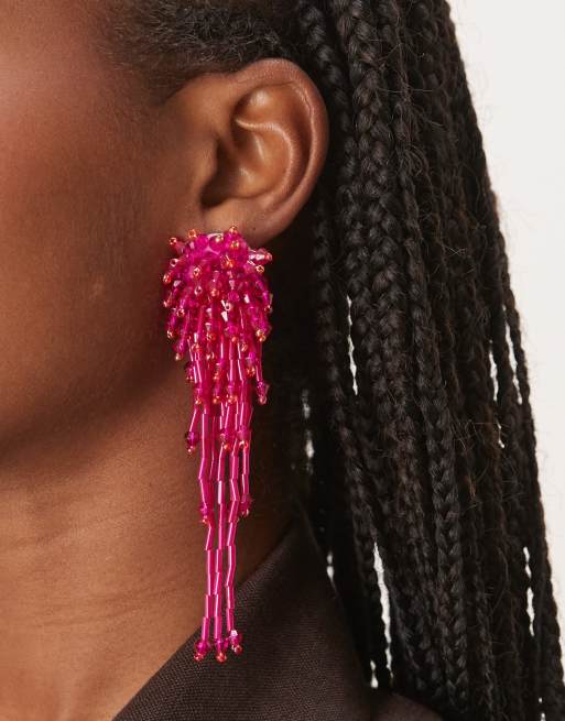 Pendientes de botón rosa intenso con diseño de cascada de cuentas de ASOS DESIGN