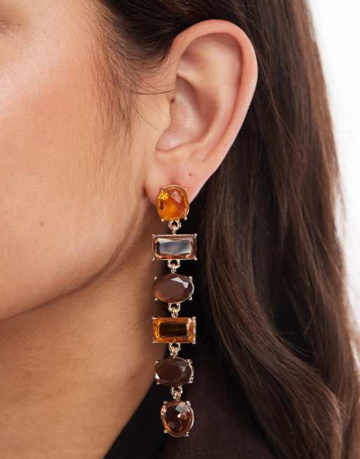 Pendientes dorados con diseño colgante de piedras ámbar variadas de ASOS DESIGN