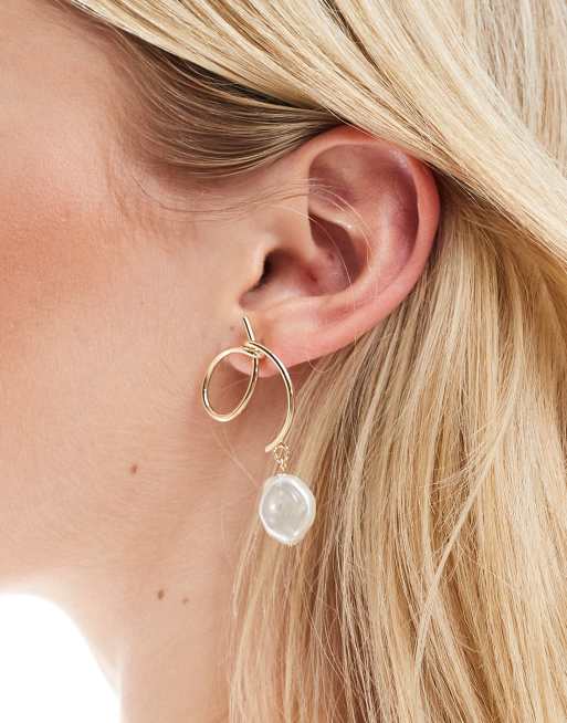 Pendientes dorados con diseño de espiral con perla sintética de ASOS DESIGN