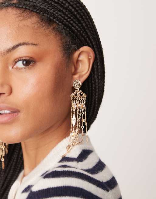 Pendientes largos dorados con borlas de cristales de estilo boho de ASOS DESIGN