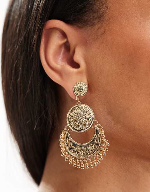 Pendientes largos dorados con detalle de disco con flecos de ASOS DESIGN