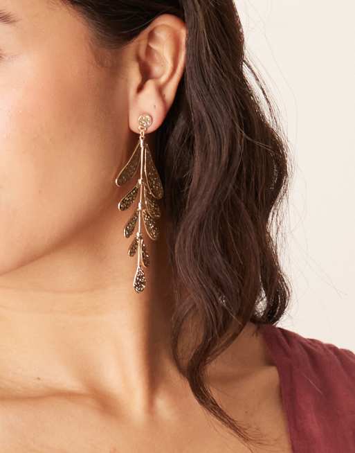 Pendientes largos dorados con textura de hoja de ASOS DESIGN