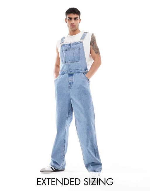Peto vaquero azul extragrande con lavado medio de ASOS DESIGN