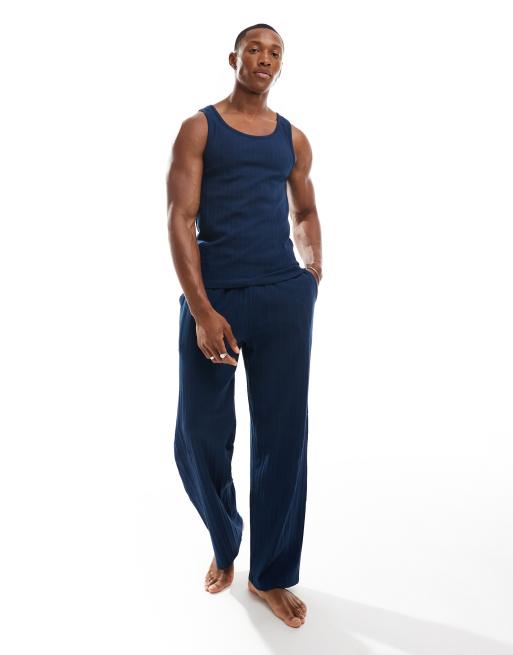 Pijama azul marino de camiseta de tirantes y pantalones de canalé de ASOS DESIGN