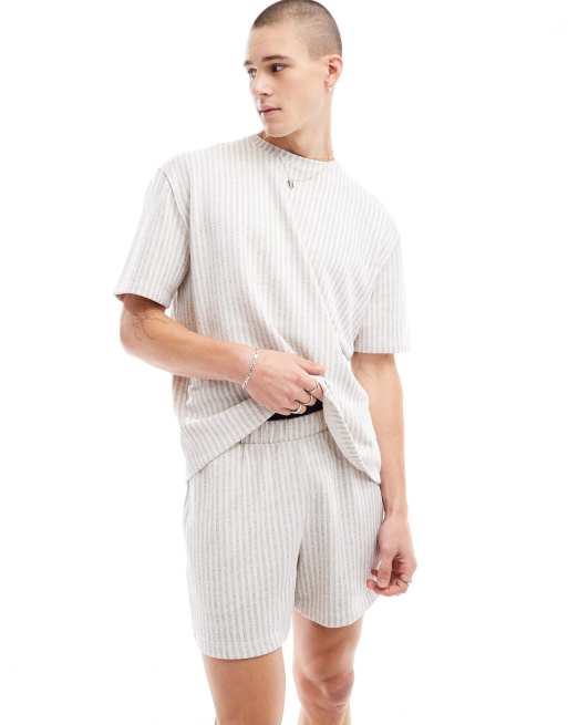 Pijama beis a rayas de canalé de ASOS DESIGN