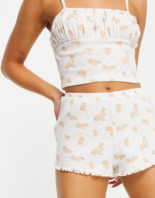 Pijama blanco y rosa con estampado floral de punto calado Mix & Match de ASOS DESIGN