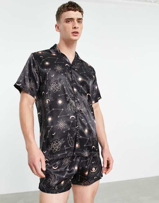 Pijama con estampado celestial de satén de ASOS DESIGN