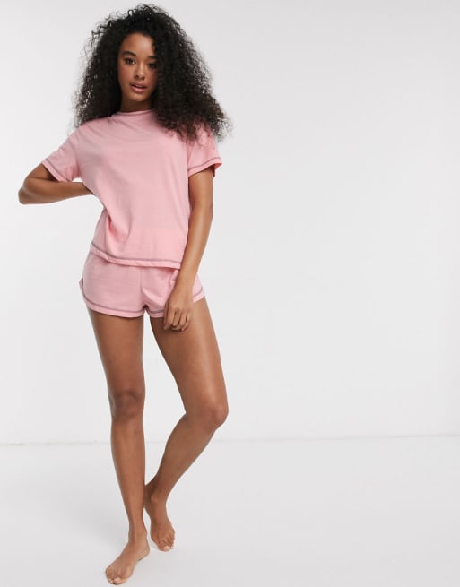 Pijama de pantalones cortos y camiseta en tejido de punto sobrehilado Mix & Match de ASOS DESIGN