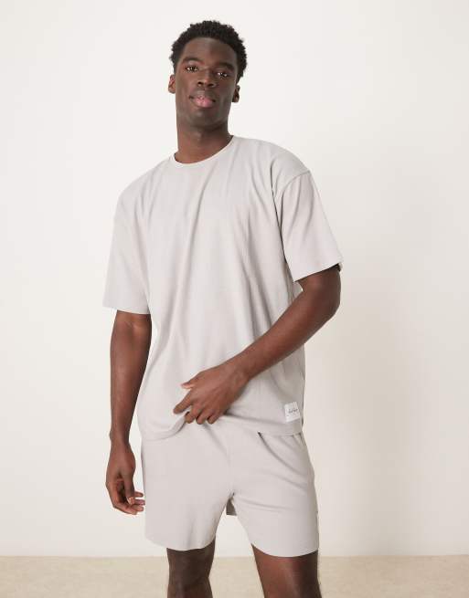 Pijama gris con parche bordado de canalé de ASOS DESIGN
