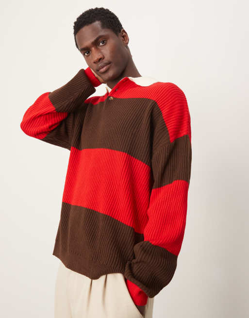 Polo a rayas rojas y marrones holgado de estilo rugby de punto de ASOS DESIGN