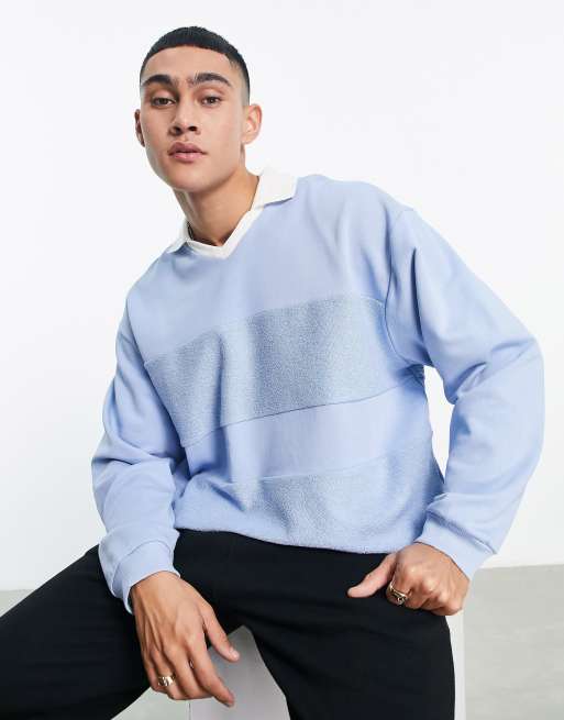Polo azul extragrande con diseño de paneles de ASOS DESIGN