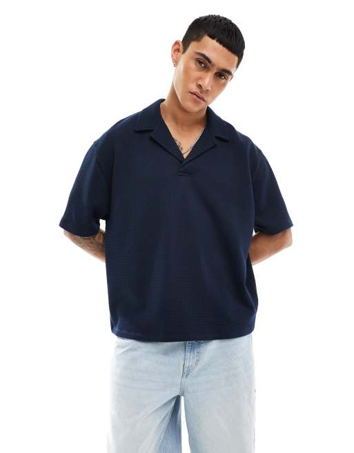 Polo azul marino extragrande con cuello de solapas de tejido texturizado de ASOS DESIGN