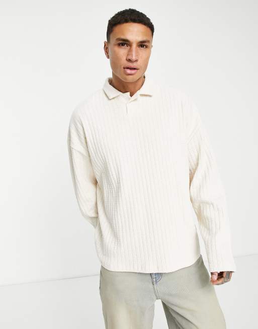 Polo beis extragrande de manga larga con textura de ASOS DESIGN
